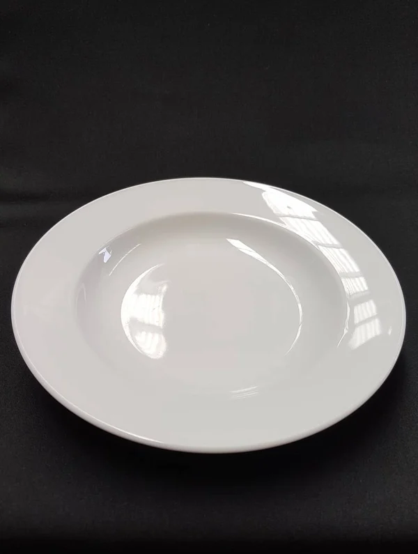 Contemporary Style Porcelain – White Vitrified China with wide rim.