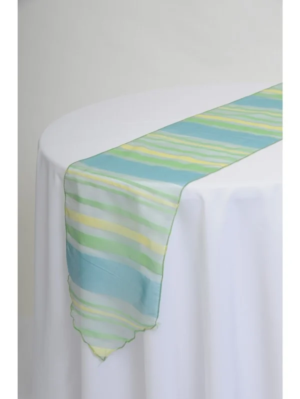 These sheer, colourful striped runners will look great down the middle of any table.